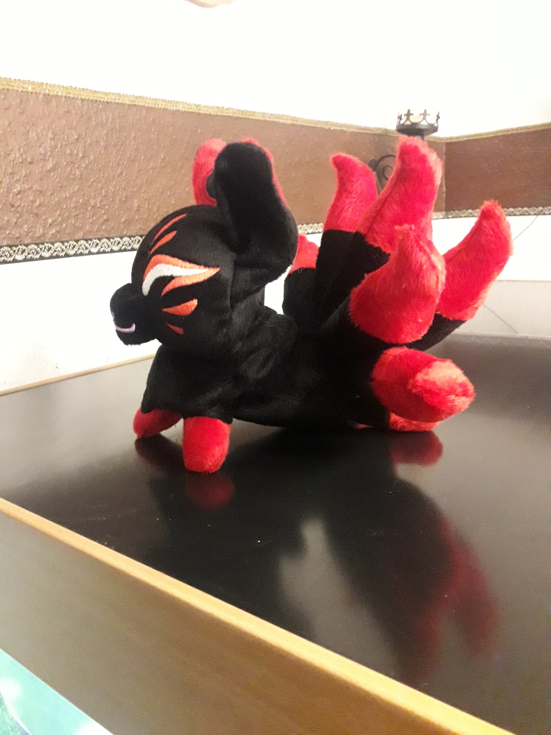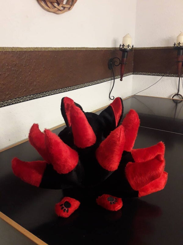 Bei den Kitsune, den Fuchsgeistern der japanischen Mythologie, zeigt die Menge der Schwänze die Macht an, die ein einzelner Yōkai besitzt. Unser kleiner Fuchs hat Neun!